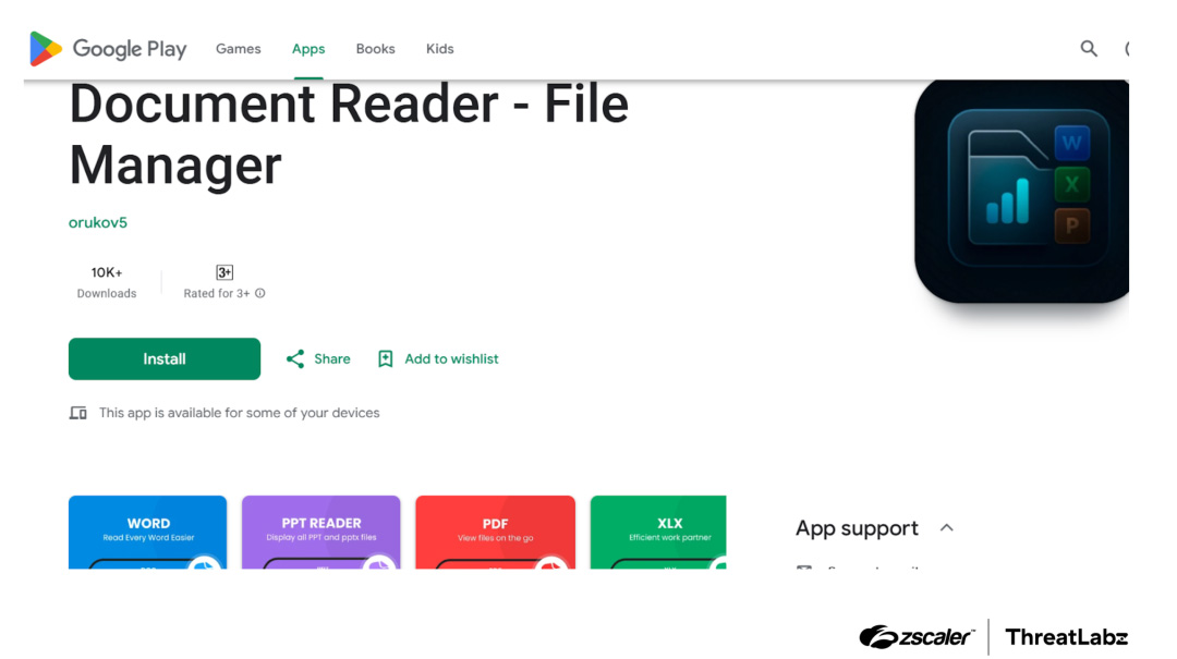 Fig 1. One of the fake apps on the Play Store. Source: Zscaler