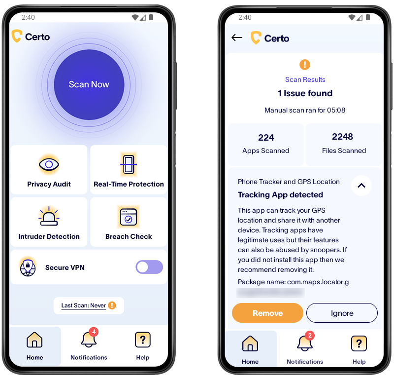 Use one of Certo’s apps to run an in-depth scan for spyware and other cyber threats.