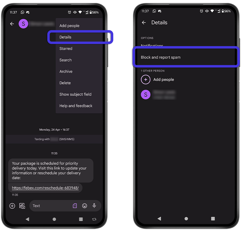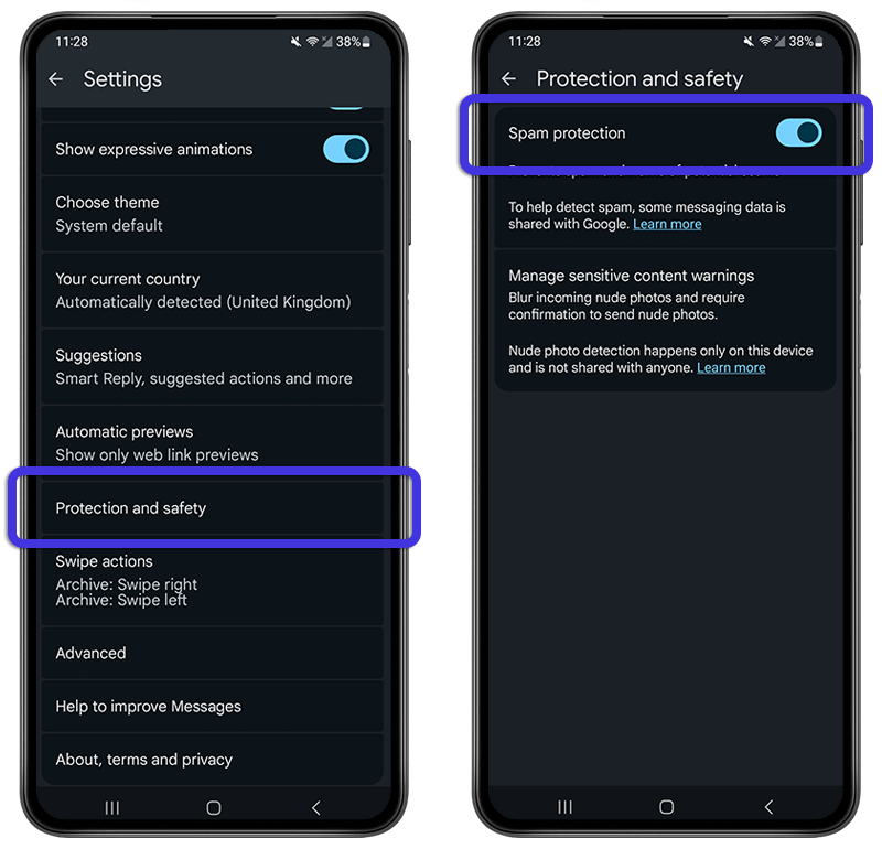 Android phones using Google Messages have built-in spam protection that automatically detects and filters suspicious texts.