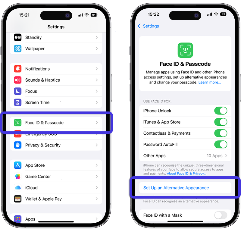 - If you don’t see Set Up an Alternative Appearance then a second Face ID is setup.
