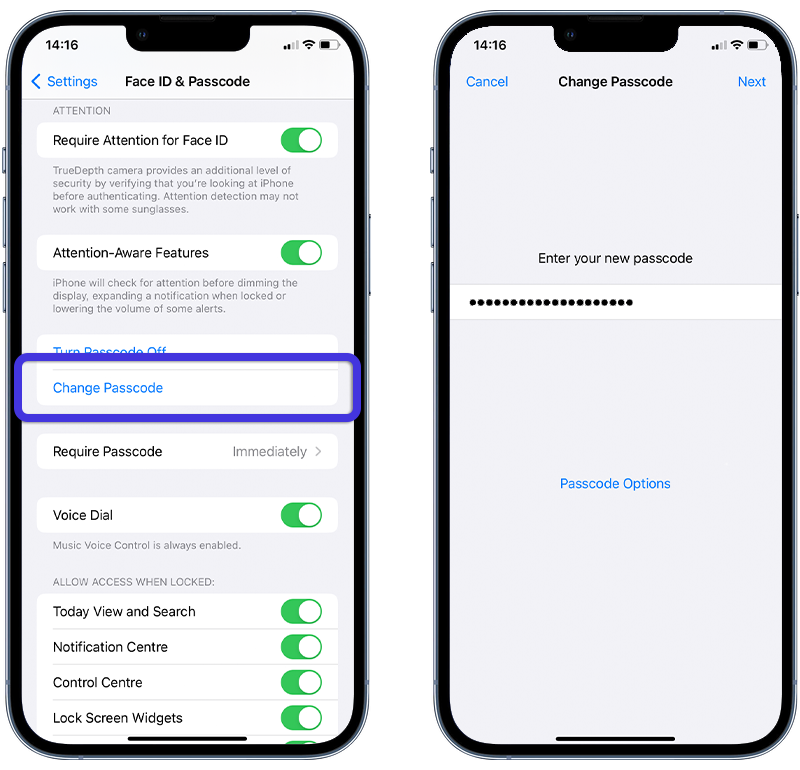 You can set up a passcode or change your current one to make it more secure by going to Settings > Face ID & Passcode.