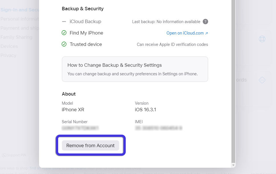 Fig 8. Removing an iPhone from an Apple Account.