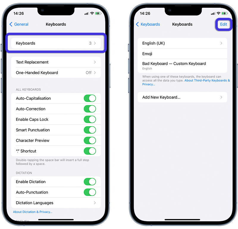 If a third-party keyboard is installed on your iPhone and you do not recognize it, it’s a good idea to remove it. Here’s how to do it: