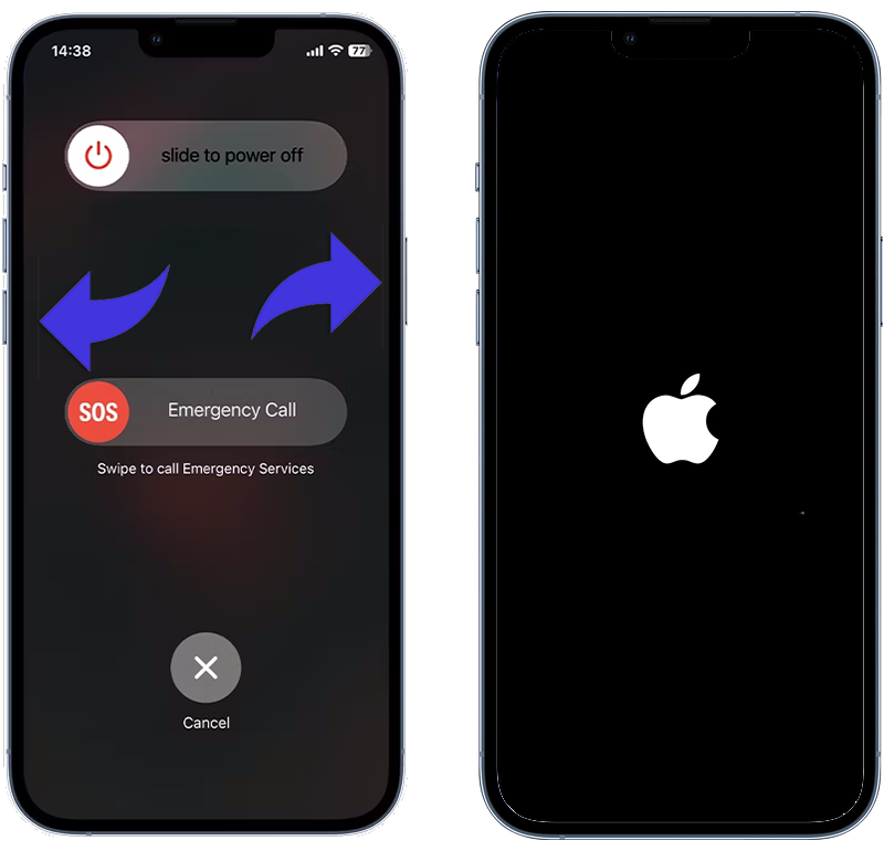 - Switch your device back on by pressing and holding the side button until the Apple logo appears.