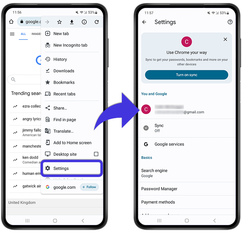 - Under ‘You and Google’, you should be able to see the email address that’s logged in.