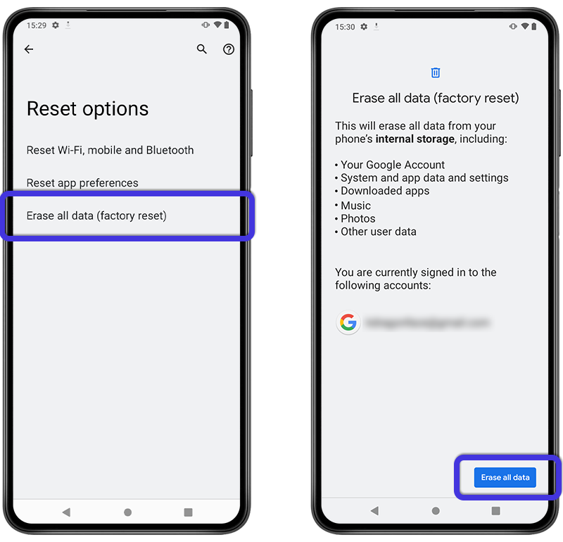 This will wipe all your personal data, so make sure you back up any contacts, photos, videos, and data that you want to keep.