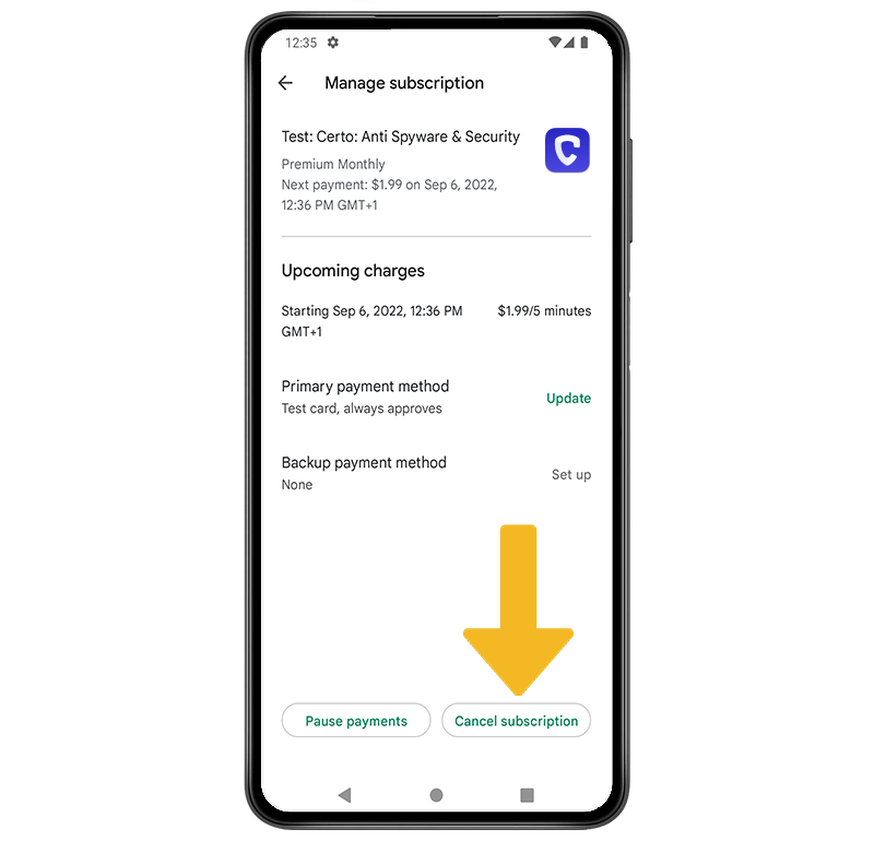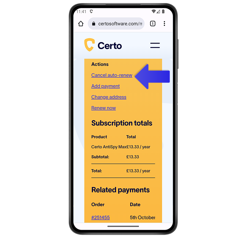 In this article we will show you how to cancel your Certo AntiSpy for Android subscription.